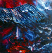Moving from paper to canvas marked a change in Cassandras work. The strokes became freer and colours came brighter and stronger. This was the precursor to the Furious Angels era.